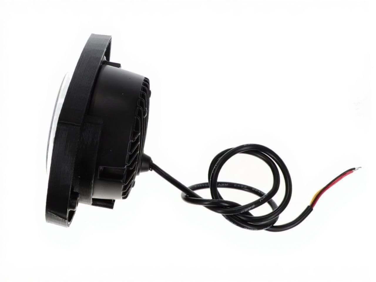 ATTENTION : Le phare ne doit en aucun cas être connecté directement (sans convertisseur) à une source de tension de 12V courant alternatif (AC) (les LED ne sont pas adaptées au courant alternatif pulsé et seraient détruites).