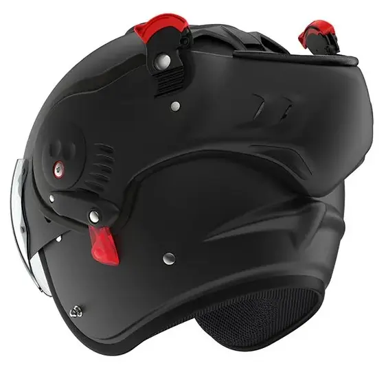 Der Roof Boxer V8 Alpha ist ein einzigartiger Klapphelm, der durch seinen innovativen Mechanismus überzeugt. Dank des vollständig nach hinten drehbaren Kinnteils lässt sich der Helm sowohl als Integralhelm als auch als Jethelm nutzen. Dieses patentierte System sorgt für maximale Flexibilität und erhöht den Tragekomfort erheblich. Besonders bei längeren Fahrten bietet die variable Nutzungsmöglichkeit einen großen Vorteil, da der Helm schnell an wechselnde Bedingungen angepasst werden kann.
