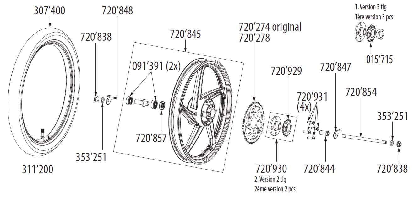 Büchse Radachse hinten Bye Bike 45km/h, Original