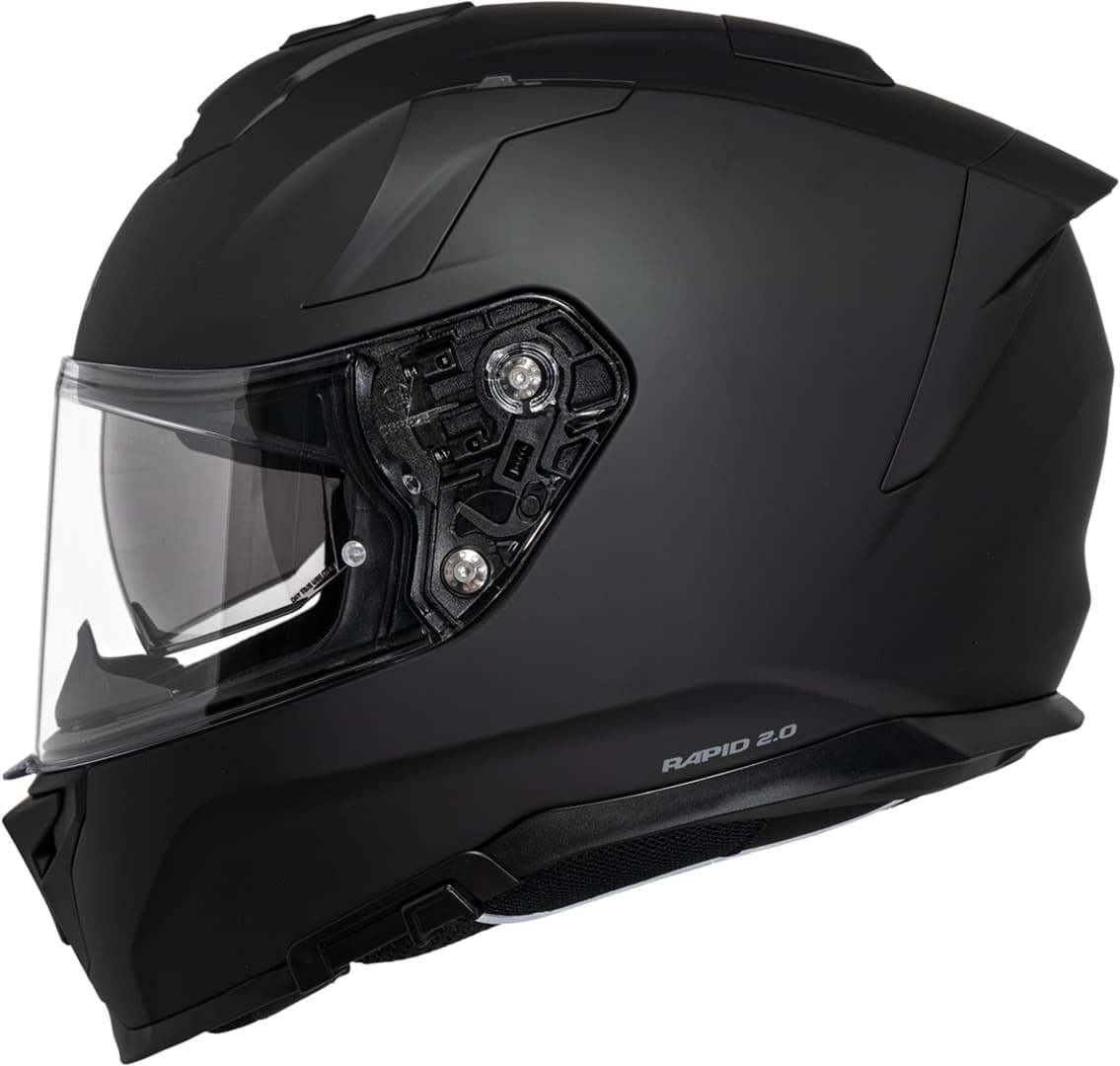 Dieser Integralhelm verbindet stylishes Design mit erstklassigem Schutz. Die Kombination aus mehrschichtigem EPS-Innenkern und robuster ABS-Schale sorgt für optimalen Schutz bei gleichzeitig geringem Gewicht – verpackt in einem dezenten, matten Finish.