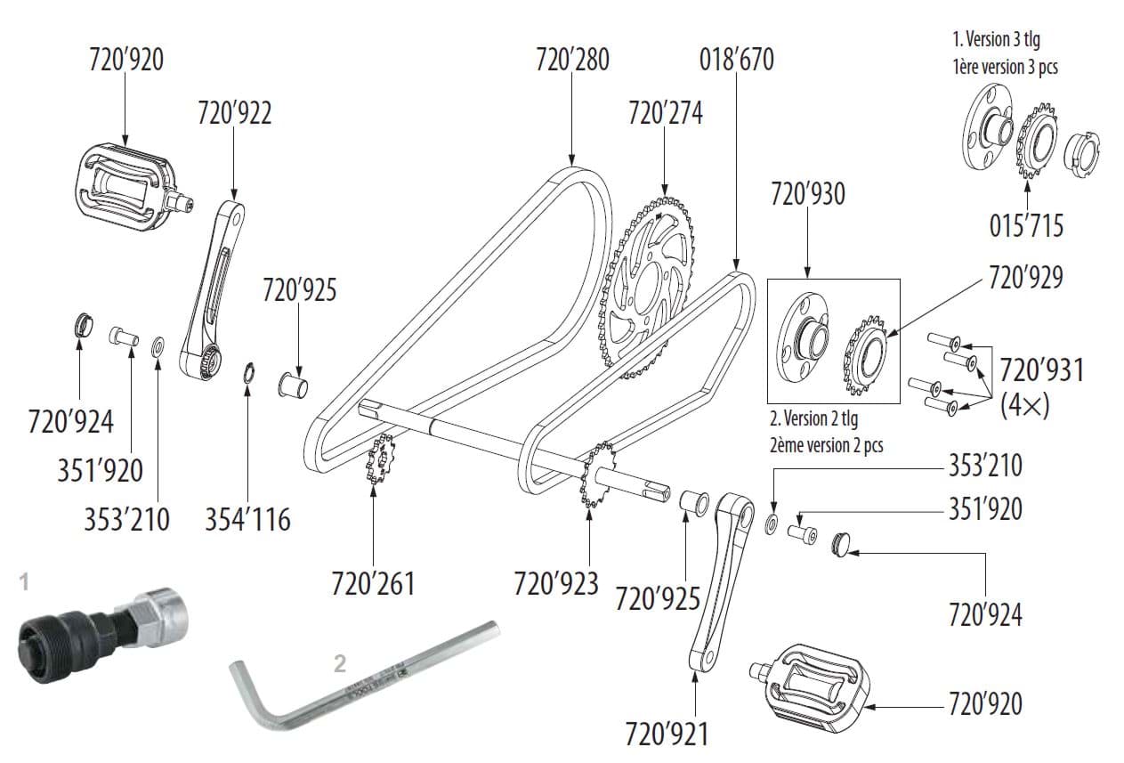 Tretkurbel rechts Bye Bike 30 km/h, Original