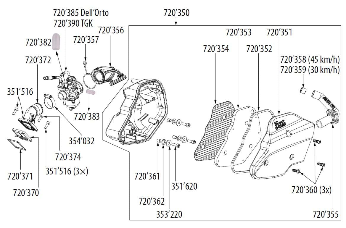 Vergaser TGK komplett mit Kabelchoque Bye Bike, Original